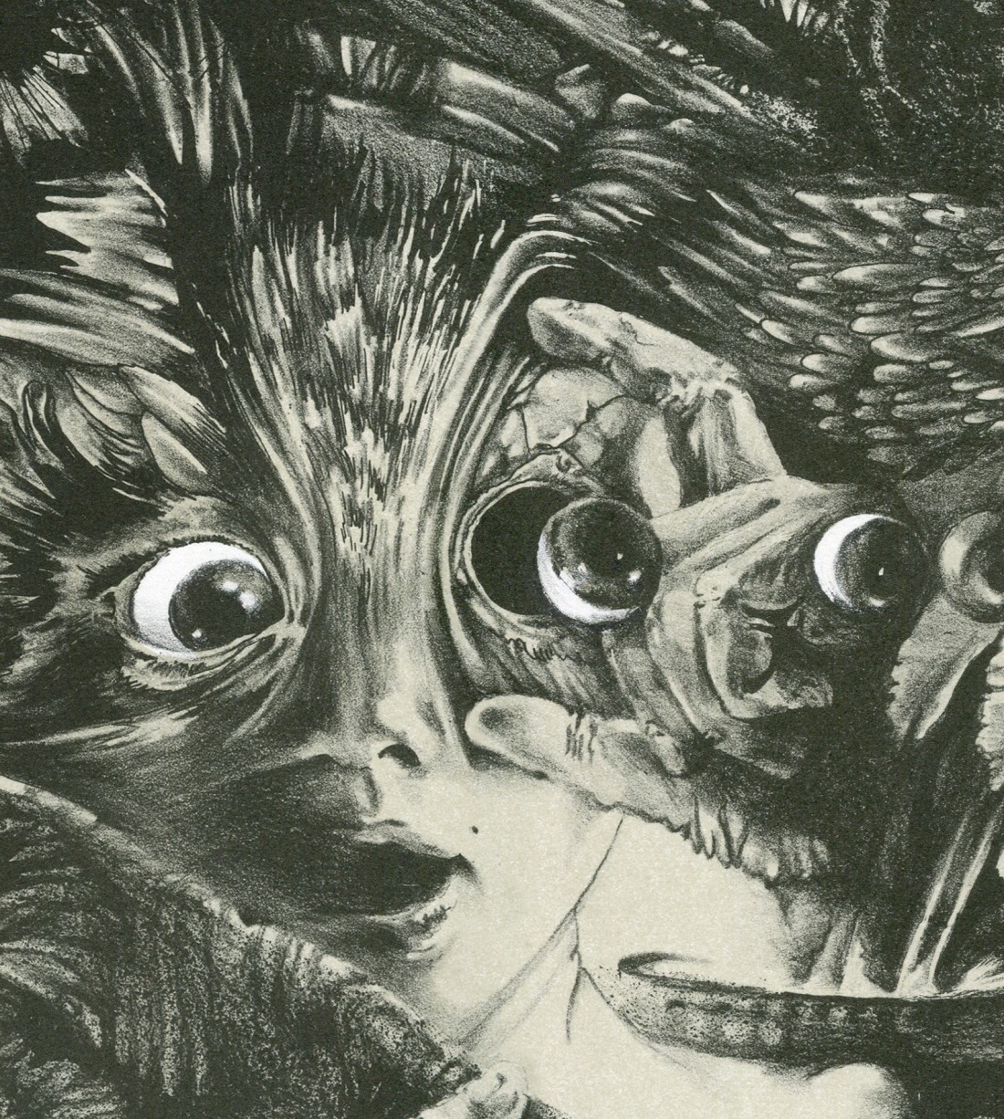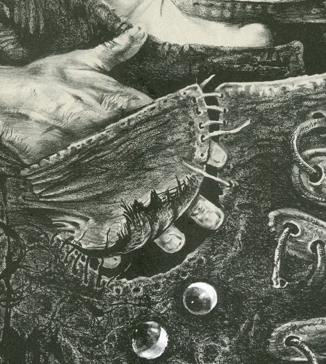 The drawing is made directly on the stone using a special lithographic pencil and ink, employing a variety of techniques.