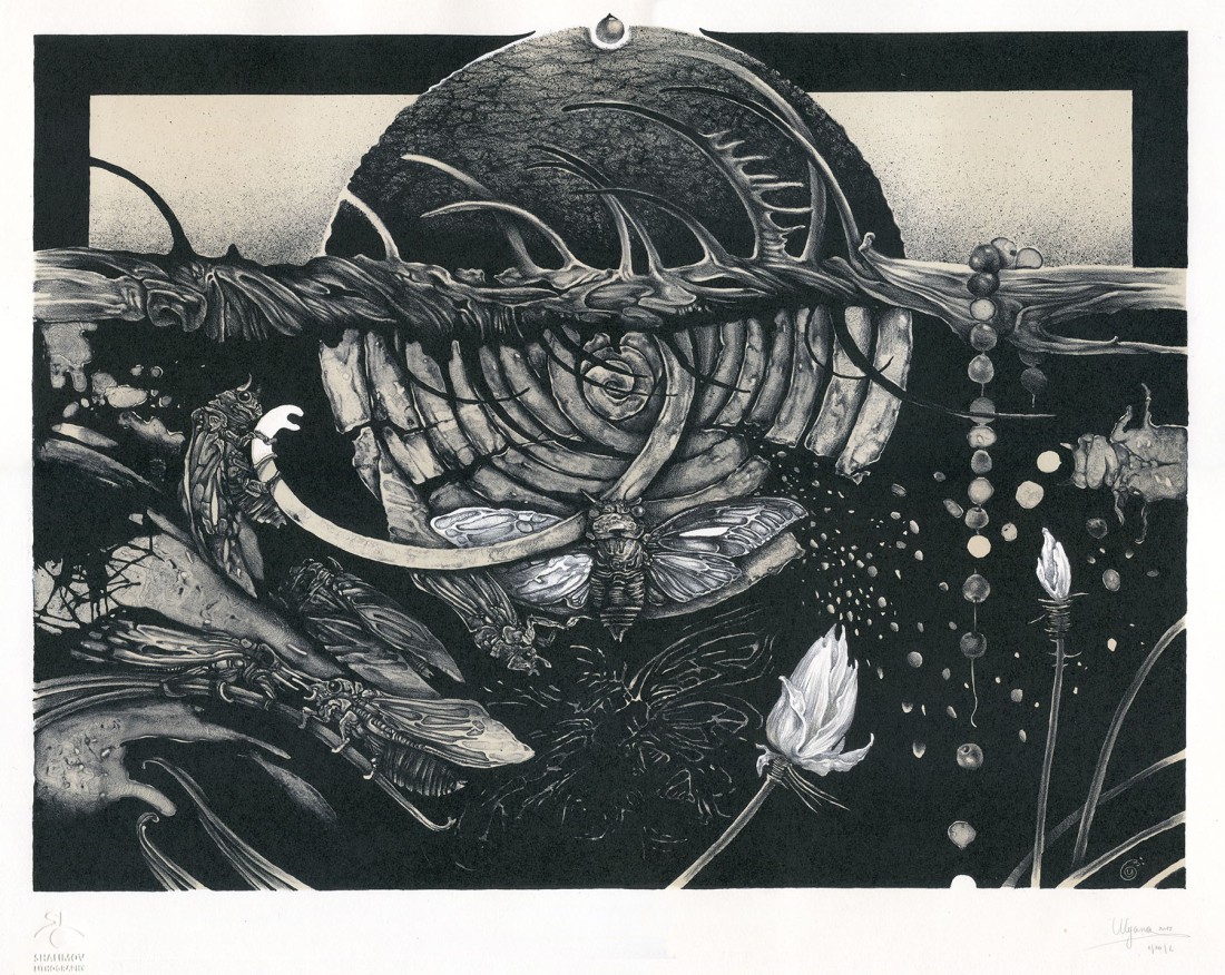 Ulyana’s lithographs are distinguished by the softness and precision of line, subtle tonal gradation, and rich color palette. Their symbolic and highly detailed compositions invite viewers to repeatedly explore hidden meanings and immerse themselves in quiet contemplation.