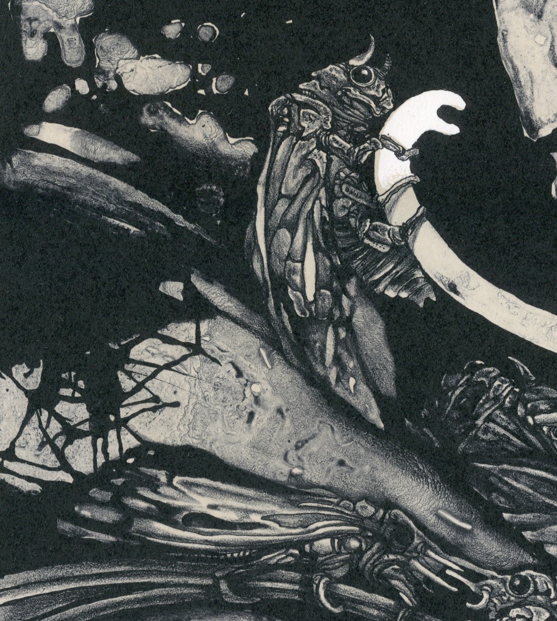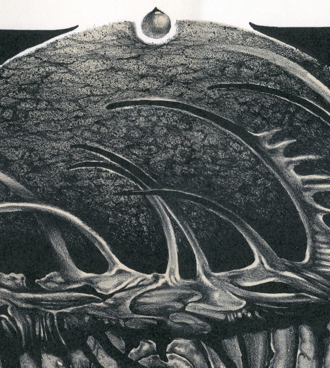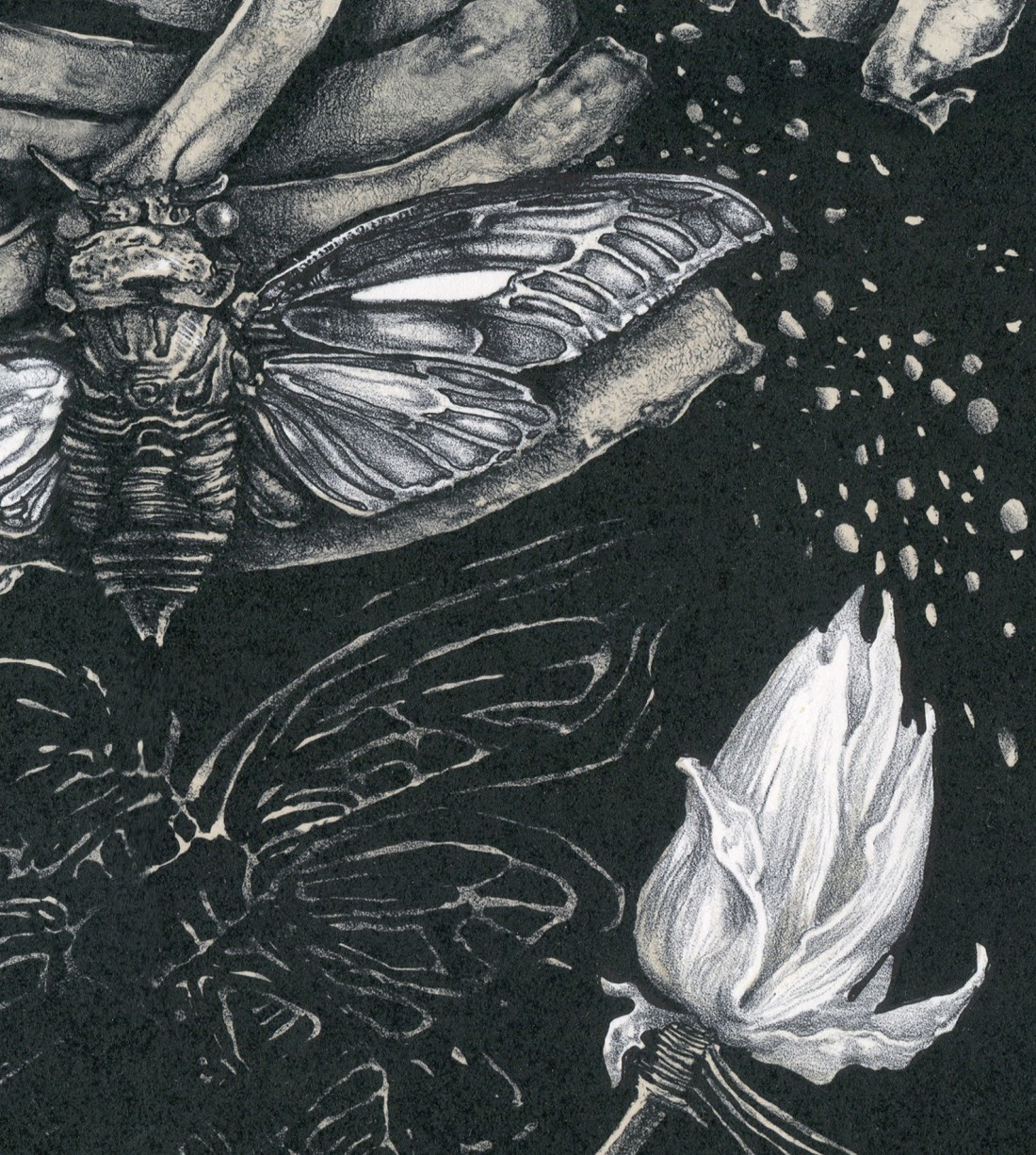 The drawing is made directly on the stone using a special lithographic pencil and ink, employing a variety of techniques.
