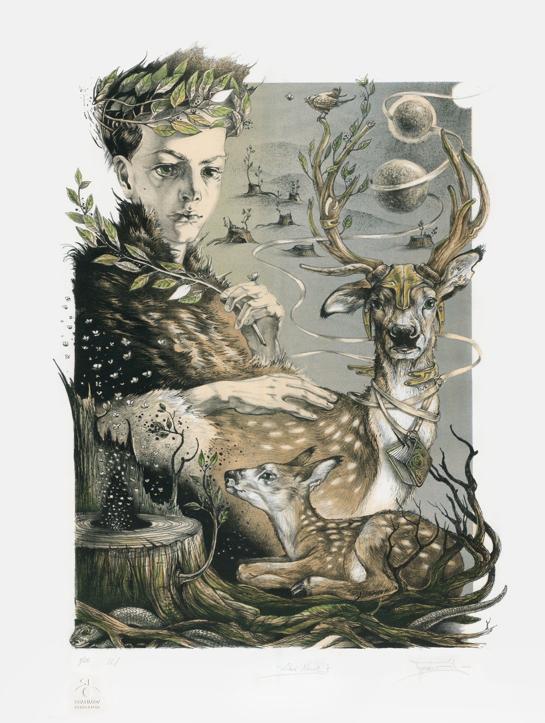 Ulyana’s lithographs are distinguished by the softness and precision of line, subtle tonal gradation, and rich color palette. Their symbolic and highly detailed compositions invite viewers to repeatedly explore hidden meanings and immerse themselves in quiet contemplation.